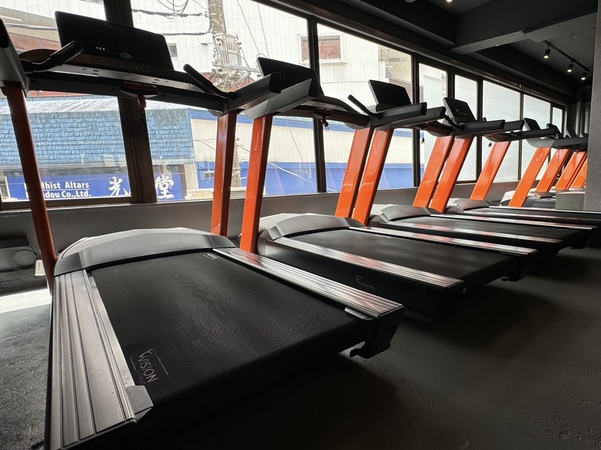 ハーフラック3台・スミスマシン1台・独立ベンチプレス2台・ダンベル1kg~40kgハックスクワット・45度レッグプレス・プレートロードマシン各種、ウエイトスタックマシン各種・トレッドミル8台